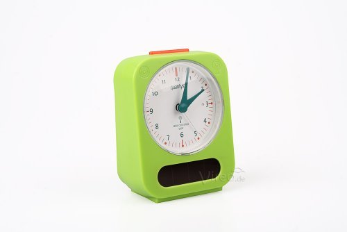This was the first solar product ever that got a "Blue Angel" award. This high efficient solar alarm clock works already with only a little light. The durable high-performance battery (battery-RAM) stores the extra energy, so that the alarm clock works well even without sun light or any light at all for quite some time. Product details - "Blue Angel"-award because it is solar powered and because of its low emissions - Unique design! - Snooze: "Snooze" 5 min - Very easy to use because of the adjusting wheel on the back - Daylight saving and accuracy by radio signal - Silent operation: No annoying ticking - Long-life battery AccuCell AC1800: No more battery change - Battery storage: 1 year! - High-quality amorphous solar cell from a German production - Even dial-illumination using EL-foil - 3 years warranty available versions: - White with black face - White with white dial - Silver with black dial - green
